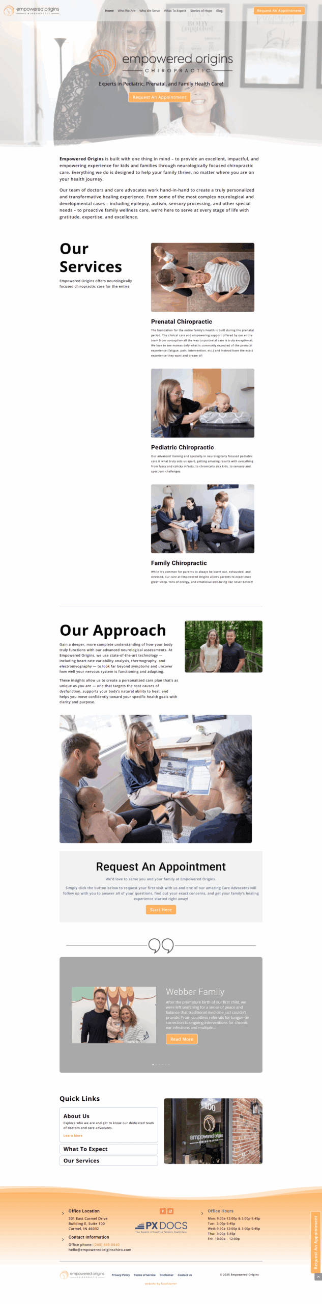 Empowered Origins Chiropractic aimed to rejuvenate its website design to significantly enhance its visual appeal and elevate user engagement, with fuseStarter playing a crucial role in transforming these key goals into reality and effectively translating Empowered’s vision into a vibrant and interactive online experience.