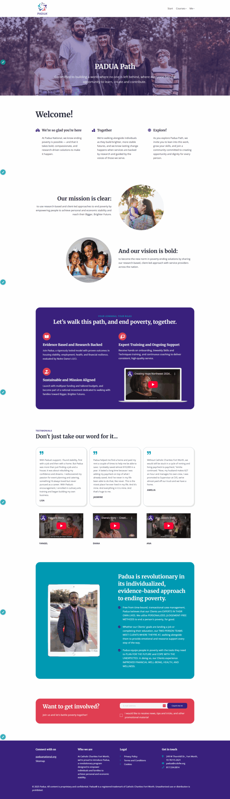 Padua National needed a way to train and equip its Mission Sites nationally with the tools and skills required to serve their clients. fuseStarter applied our expertise in constructing Learning Management Systems (LMS) to develop a solid home-base for mission site staff to continually learn and improve their ability to carry our the Padua vision.